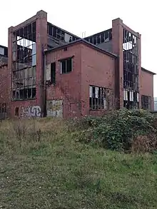 The plant, located on Curt-Helms-Str. (today: Glashüttenweg), sat along the eastern bank of the Trave River north of the old City of Lübeck, an island in the Trave River.