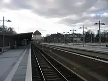 Olympiastadion is a railway station in the Westend district of Berlin. Located at the southern entrance of the Olympic Stadium, it is served by the S-Bahn lines S3 and S9. The station consists of one island platform which is in regular use, as well as four further terminal island platforms which are only used for the extra trains during major events.