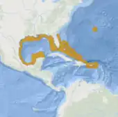 Holacanthus bermudensis is found in the western Atlantic from North Carolina to Bermuda, into the Bahamas and Florida to the Gulf of Mexico, and also to Yucatan, Mexico in the west and east to Puerto Rico and the Virgin Islands.[1][2] Holacanthus bermudensis is a benthic species, living close to the seabed where there are areas of sponges, coral, or rock at depths between 2 and 93 metres (6.6 and 305.1 ft). It is a diurnal species, active in daylight and hiding within the reef at night. Juveniles prefer more sheltered area such as bays, channels, and inshore reefs.[2]