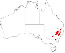 - ↑ "Bertya gummifera – Occurrence records". The Australasian Virtual Herbarium. Council of Heads of Australasian Herbaria. Retrieved 2019-06-22.