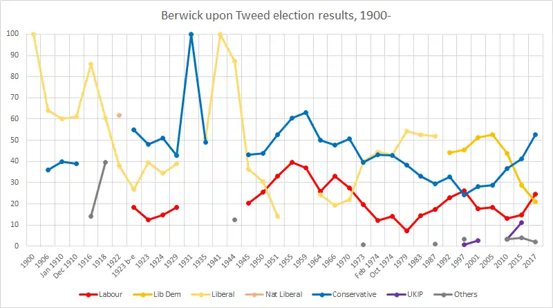 Rural in nature, sparse of population and with agriculture as a major source of employment, Berwick-upon-Tweed has never elected a Labour candidate, one of two constituencies in the north east of England not to have done so. The closest Labour have ever come to winning the seat was at the 1966 general election, where they finished just 4,373 votes behind incumbent Conservative MP Antony Lambton.