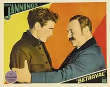 Betrayal is a 1929 American silent drama film produced for Famous Players–Lasky and released by Paramount Pictures.[1] The film is the last silent film directed by Lewis Milestone,[2] the last silent performance by Gary Cooper,[3] the last silent performance by Germany's Emil Jannings,[4][3] and the only onscreen pairing of Cooper and Jannings.[1] It is considered a lost film.[5]