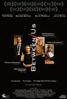 Between Us is a 2012 American drama film directed by Dan Mirvish, based on the play by Joe Hortua, with a screenplay adaptation by Hortua and Mirvish. It stars Taye Diggs, Melissa George, David Harbour, and Julia Stiles.[2]