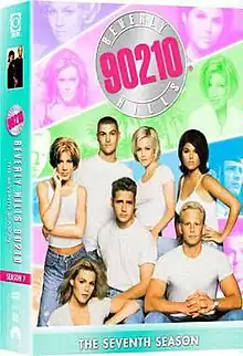 The seventh season of Beverly Hills, 90210, an American drama television series aired from on August 21, 1996 on Fox and concluded on May 21, 1997 after 32 episodes. This season follows the gang during their senior year of college as struggle with issues such as hostage situations, relationships, racism, infidelity, HIV/AIDS, natural disasters, alcoholism, depression, drug use, pregnancy, suicide attempts, miscarriages, and sex.