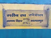 ![]() Bhagalpur Garib Rath Express at Anand Vihar Terminal | |||||
