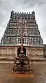 The temple[4] has a 5-tier rajagopuram and a vast temple complex. The prime deity, Bhaktavatsalar has an imposing image. The temple tank is situated right opposite to the temple and is considered one of the largest temple tanks in the state. This shrine is also referred to as Saptamrita Kshetram (seven celebrated elements of nature), referring to seven of its elements such as Vimanam, Mandapam, aaranyam, tirtham, kshetram, river and town.[2] The main entrance of the temple faces the East and at the entrance of the temple, there is a four pillared open hall. The temple has a 90 ft (27 m) tall rajagopuram (temple tower) and is enclosed by rectangular walls around it. There is a smaller temple tower on the western side. The walls of the temple is surrounded by large streets, through which the temple chariot passes along during festivals. A rare image of Buddha, image of Vaikunta Natha and Vishnu mounted on his eagle mount Garuda are the major images in the temple. There is a pillared hall leading to the shrine of Kannamangai Thayar shrine that has pillars with Nayak architectural representation.[2]