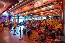 Every Bhakti Marga ashram has at least one temple, which in turn often contains several idols representing deities. In addition to various Hindu deities, Vaishnava and non-vaishnava, Babaji and Ramanuja are worshipped as gurus in the main temple in Springen.[10] The main deities in Sri Vaishnava are Narayana and Lakshmi,[16][17] who are also worshiped in the Bhakti Marga temples.[18] However, many other deities are also worshiped, some of which belong to the Vaishnava pantheon (Radha and Krishna), but some of them do not. This worship of non-vaishnava gurus and deities, like Shiva and Durga,[19] distinguishes Bhakti Marga from other Vaishnava religions, like Shri Vaishnava, or Gaudiya Vaishnava, which is known in western countries mainly through the Hare Krishna movement.[20]