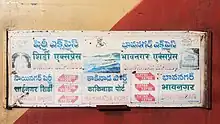 ![]() Bhavnagar–Kakinada Express trainboard | |||||