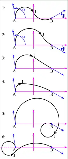 • the total rotation (turning angle) of the curve is exactly (not , which is the rotation for other biarcs);
