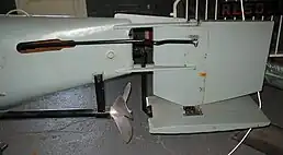 The Biber was powered on the surface by a 32 hp (24 kW) Otto Blitz petrol engine, which was used despite concerns about the risks posed by the carbon monoxide the engine gave off.[1] The engine had the advantage of being cheap and available in large numbers.[1] Propulsion while submerged was provided by a 13 horsepower (9.7 kW) electric motor, supplied by three Type T13 T210 battery troughs.[1]