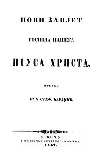 - ↑ "Поводом 170-годишњице превода Новога Завјета Вука Стефановића Караџића (1847 – 2017) | Serbian Orthodox Church [Official web site]".
