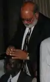 Evangelist anointing with oil in Kenya, Africa.