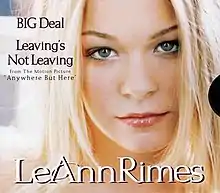 "Big Deal" is a song written by Jeffrey Steele and Al Anderson, and recorded by American country music artist LeAnn Rimes. It was released on September 28, 1999, as the first single from her eponymous album.[1] The song charted at number 6 on the US country charts[2] and number 23 on the US Hot 100 chart. The B-side track, "Leaving's Not Leaving," was released on the soundtrack for the film, Anywhere But Here on November 2, 1999.[3]