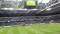 The Swedish football magazine Offside ranked the largest clubs in Sweden in 2010 by defining five categories ("national honours", "international honours", "excellence", "attendance", and "trend") in which AIK ranked 4th, 3rd, 5th, 1st, and 1st, IFK Göteborg ranked 2nd, 1st, 2nd, 2nd, and 3rd, and Malmö FF ranked 1st, 2nd, 1st, 4th, and 2nd.[10] Totalling the scores of each category, Malmö FF ranked first scoring 87 points narrowly beating IFK who scored 85 points, with AIK third at 79 points.[11] The fourth-ranked club Djurgårdens IF scored 60 points in total, the only other club together with IFK Norrköping outside the big three that managed to rank top 3 in any category.[10] AIK, IFK Göteborg and Malmö FF are also the three clubs that have contributed with the most players, as well as the most caps, to the Swedish national football team.[12]