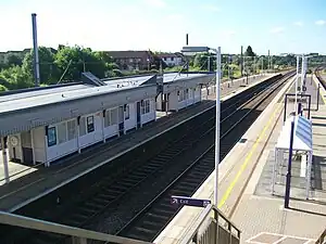 Biggleswade has two large platforms and four main rail lines, a pair of "up and down" slow lines used by stopping services and a pair of "up and down" fast lines used by fast InterCity East Coast passing through at high speed and Great Northern services at peak times running non-stop to/from London. A fifth line extends off the "down" slow line which links into the remaining sidings used by the Plasmor block company.[2]