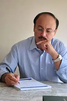 Bijan Abdolkarimi (Persian: بیژن عبدالکریمی; born 1963) is an Iranian philosopher, thinker, translator, and editor.[1][2][3] His main interests are ontology, political philosophy and the critique of religious and intellectual traditions.[4] He claims to challenge the dominant ideological discourse in Iran.[5][6] He has participated in debates at Iranian universities and also in IRIB TV4 in which he has opposed the notion of Islamic humanities.[7][8] [9][10] He is also a scholar of Heidegger's thought and philosophy.[11][12][13]