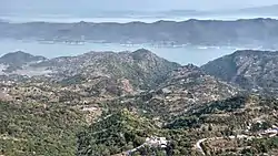 The Bandla range is bisected by the Ali khad and, like Jhanjiar and Tiun, is considered two parts. Strictly speaking, Bandla is the part south of the Ali khad, while the northern part is called Barmenas. This range of hills is about 17 km long and the district capital, Bilaspur town, is located on its western slope. The summit is some 1,375 m above sea level.[3]