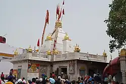Although not very large, Naina Devi has its own town council. The town is mainly known for its temple, which is the most important religious site in Bilaspur district. The temple is above the town — it crowns Naina Devi hill's summit — and a long flight of stone steps connects the two. At the base of the steps is a small bazar. The town also has a municipal rest house, a commercial inn, a middle school, and a Sanskrit pathshala.[3]