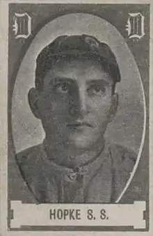 ![]() Hopke with the Detroit Tigers during the 1909 American Series | |