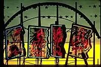 [2] The installation created controversy since part of the imagery employed neon lighting and was visible only after dark.