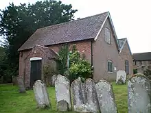Worshippers from across northern Sussex came to this chapel; many were from the village of Billingshurst a few miles away.[4][6] This group later became large enough to split from the Horsham congregation and establish a chapel in their home village. They chose a grassy, raised site set back from the west side of the High Street,[7] and erected a modest cottage-like chapel in 1754.[note 1][7][8][9] The founders were William Turner and William Evershed, whose initials are recorded on a dated stone tablet inside.[10] Evershed was a General Baptist preacher at Horsham who moved to a farm in Billingshurst in 1742; together with Turner he held and preached at small meetings in Billingshurst.[6] The Evershed family maintained a 260 year connection with the chapel and more than 120 Eversheds of various generations, from William himself,[11] to Susie Evershed, who died in August 2022, aged 90,[12] are buried or commemorated in the graveyard,[13] a "surprisingly big" area which surrounds the chapel and helps it "make a display in spite of itself" and its modest architecture.[7] After making plans for a chapel in the village in 1753,[6] Turner and Evershed bought the site for three guineas (£510 as of 2023).[13][14] The chapel was registered for worship in October 1754;[6] its date of founding makes it one of the oldest Nonconformist places of worship in both the Horsham district and the whole of southeast England.[8][13]