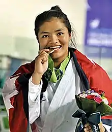 ![]() Bimala Tamang after winning bronze in 2014 Asian Games | |||||||||||||||