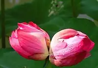 Bingdi lotus (Chinese: 并蒂莲; pinyin: bìngdì lián), or Bingtou lotus (Chinese: 并头莲; pinyin: bìngtóu lián), is a species of lotus native to China that carries a pair of flowers on each flower stalk, whereas there is only a single flower on most other species of lotus. Bingdi lotus belongs to a special type named Qianban lotus (Chinese: 千瓣莲; pinyin: qiānbàn lián) and is a treasure among flowers because it has all the essential parts of both the leaves and lotus.[1]