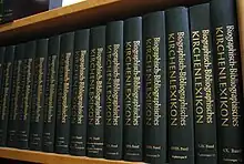 - Friedrich Wilhelm Bautz (from Volume 3 (Vol. 3) onwards continued by Traugott Bautz): Biographisch-bibliographisches Kirchenlexikon, 14 Bände (+ bisher 14 Ergänzungsbände), Bautz, Hamm 1975ff