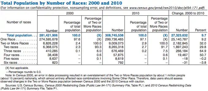 11. Jones, Nicholas (September 2012). "2010 Census Brief: The two or more races population" (PDF).
