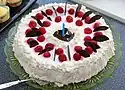 The earliest known recipe for bløtkake is in a cookbook written by Helle Schrøders in Denmark in 1692.[2] In countries outside of Norway, it is commonly referred to as torte or whipped cream cake.