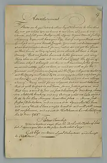 - ↑ Bradford, William. "Extract of a letter from Carlisle, March 14, 1765". Pennsylvania Journal and Weekly Advertiser.