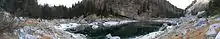Black Lake (Slovene: Črno jezero) (1,319 metres or 4,327 feet) is the lowest-lying lake in the Triglav Lakes Valley, part of the Julian Alps in Slovenia. It is named for its location in a basin in the middle of the forest, which stretches right to the edge of the Komarča rock face. Because of its relatively low elevation, it is the warmest of the Triglav Lakes. At the surface, its temperature in summer is 9 °C (48 °F), whereas in winter it is 3 °C (37 °F). It is 150 m (490 ft) long, 80 m (260 ft) wide, and up to 6 m (20 ft) deep.[1] The Alpine Newt (Ichthyosaura alpestris), endemic to the Alps, lives in it.