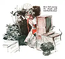 The police want to know more about her and, finishing their questions, they let her go — but surreptitiously follow her. The police lose her trail but Archie knows her home address, where she has been living with Harry Gould. He arrives at Rose's apartment just as she is about to flee the city, and takes her to Wolfe's house. There Archie searches her suitcase and finds some printed matter that Rose cannot or will not explain: a clipping of an article by Hewitt on Kurume yellows,[lower-alpha 1] a plant disease that is fatal to broadleaf evergreens; a postcard to Rose from Harry, postmarked Salamanca, New York (in the western part of the state); and a work order from a garage, also in Salamanca.