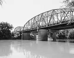 The Black River Bridge carries U.S. Route 67 (US 67) (Future Interstate 57 (I-57)) across the Black River in Pocahontas, Arkansas. The bridge is a twin span, each carrying two lanes of traffic. The northern bridge was a historic structure, built in 1934 by the Pittsburgh-Des Moines Steel Co., and was listed on the National Register of Historic Places. In 2016 demolition began on the northern bridge, and it was delisted in 2018. This bridge consisted of two Parker trusses, one on either side of a Warren swing span, and trestled approaches, giving it a total length of 1,255 feet (383 m). It was one of three surviving swing bridges in the state. The southern bridge is a modern steel girder structure, built in 1986, whose construction rendered the swing section inoperative.[2]