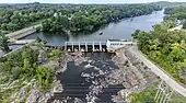 The city is located on the falls of the Black River at the northeast edge of the Driftless Area, where the river cuts through a region of granite.[9] The falls are covered by a hydroelectric dam, forming the 200-acre (0.81 km2) Black River Flowage.[10]