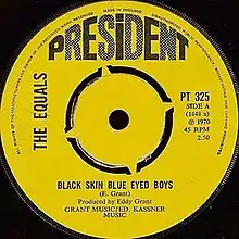 "Black Skin Blue Eyed Boys" is a song written by Guyanese-British musician Eddy Grant and recorded in London in 1970 by his band the Equals. Their recording, produced by Grant, reached number 9 on the UK Singles Chart in January 1971 and was the band's last chart hit.[3]