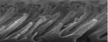 The modification was discovered in the 1980s as an unwanted side effect of reactive ion etching (RIE).[1][2] Other methods for forming a similar structure include electrochemical etching, stain etching, metal-assisted chemical etching, and laser treatment (which is developed in Eric Mazur's laboratory at Harvard University).