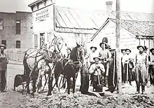 Civil War veteran William Edward Wheeler, from Vermont, was an early settler. On July 1, 1880, Wheeler began publishing a newspaper called the Blackfoot Register.[13] The first issue described the businesses in operation in Blackfoot on the publication date: "four general merchandise stores, one jewelry store, a livery stable, four saloons, a hotel, one meat market, two blacksmith shops, one barber shop and one lumber yard."[14] Henry W. Curtis opened the first hardware store in 1885.[15]