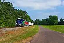 The Northeast Texas Rural Rail Transportation District (NETEX) purchased the segment between Greenville, Texas and Sulphur Springs in 1995 (from the Southern Pacific), and the remainder of the line in 2000 (from Union Pacific).[4] In 1999, Blacklands Railroad was awarded the contract to operate the 65.6 mile line from 1999 until 2020, from Greenville where it interchanged with Kansas City Southern to Sulphur Springs (another KCS interchange) and finally Mount Vernon, Texas near the Franklin/Titus county line; from this point Blacklands Railroad operates via Union Pacific trackage rights to Mount Pleasant, Texas where it interchanges with Union Pacific. Presently the Blacklands Railroad operates only on the UP trackage rights and interchanges with UP in Mt. Pleasant. [5]