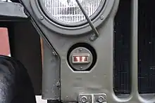 Blackout driving lights are mounted on the driver's side of the vehicle, typically on the fender or grille. They give off a diffused beam of white light that takes the place of regular headlights when driving under blackout conditions. It is intended to give off just enough light for the driver to make their way. Blackout driving lights are also hooded, making the light only able to be seen when looking up at it. With the use of night vision goggles the effectiveness of the blackout driving light can be increased.[1]