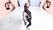 The music video for "Blame It on the Girls" was directed by Nez Khammal.[9] An unfinished version of the video premiered on 3 October 2009 in the United Kingdom on Channel 4.[10] The video starts in black and white with Mika sitting on a chair, wearing a bowler hat and holding a cane whilst speaking a prologue to the song. As the music starts the video bursts into colour, showing three screens behind Mika, each showing him in alternate colours of pink and blue. The screen to the left and right break away as female dancers dressed in half a tuxedo and half an orange dress dance into shot. As the chorus ends, the dancers disappear and Mika is seen sitting in a large sofa, he then gets up and moves over to a maze of mirrors, and then the girls join him again once the second chorus begins. The video is set in a film studio dressed in pastel colours with Mika playing a pastel pink piano. The video ends with him jumping into the air and the picture being frozen. The video features the appearance of the famous "one take video" seen in videos like OK Go's "Here it Goes Again," but actually contains cuts hidden with the use of portals. Portal transition is when the cut takes place within a movement into a different but similar image giving the appearance of one smooth camera movement but in reality has been cut. For example, at 1:50 minutes into the video we see this portal transition happen using the image in the mirror. Another example of the hidden editing in this music video is seen at 1:10 into the video where we get a cross dissolve cut from one moving shot to another giving the appearance of a swift moving camera. Other "hidden cuts" are at 2:21, 2:32 and 3:09.
