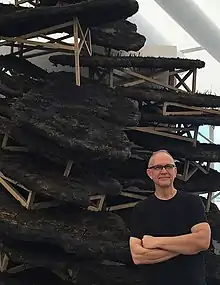 His sculpture investigates the human relationship to the contemporary landscape and the ecological and geopolitical conflicts embedded in that relationship.[1] His practice is founded on extensive field research and incorporates discourses on art, cultural geography, ecology and the repurposing of the landscape genre, traditionally associated with painting, into sculptural statements.[2]