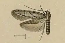 The wingspan is 12โ14 mm. The forewings are pale stony grey, sparsely sprinkled with fuscous and rust-brown scales. The hindwings are grey.[2]