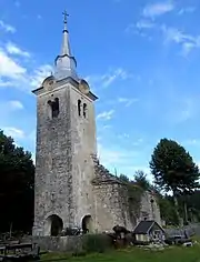 The local church is now only a ruin. It was dedicated to the Holy Cross and was a Baroque building from the mid-17th century.[8]
