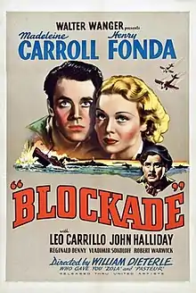 Blockade is a 1938 American drama film directed by William Dieterle and starring Madeleine Carroll, Henry Fonda, and Leo Carrillo.[2]