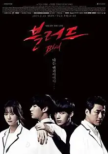 Blood (Korean: 블러드; RR: Beulleodeu) is a 2015 South Korean television series starring Ahn Jae-hyun, Ji Jin-hee, Koo Hye-sun, and Son Soo-hyun.[1][2][3][4][5] It aired on KBS2 from February 16 to April 21, 2015 on Mondays and Tuesdays at 22:00 for 20 episodes.