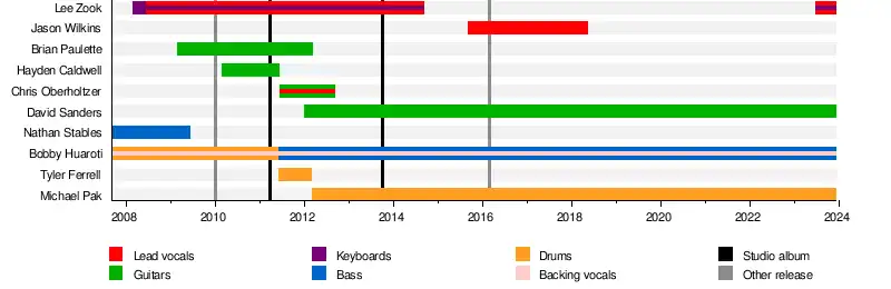 | Past members | Jay Hathaway Nathan Stables Hayden Caldwell Brian Paulette Chris Oberholtzer Tyler Ferrell Travis Lilley Jason Wilkins |