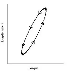 From the above relations, the components of the complex modulus are determined from a loop that is created by comparing the change in torque with the change in time which forms a loop when represented graphically. The limits of - d(t) loop and the area, A, bounded by the - d(t) loop, which represents the energy dissipation per cycle, are used in the calculations. The phase angle , storage modulus G', and loss modulus G then become: