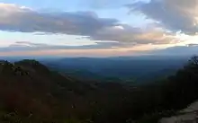 The Blowing Rock area was once fought over by the Cherokee and Catawba Native American tribes. According to legend, two lovers - one from each tribe - were walking near the rocks when the man received a notice to report to his village and go into battle. When his lover urged him to stay with her, he became so distraught that he threw himself off the blowing rock into the gorge. The woman prayed to the Great Spirit to return her lover, and the Spirit complied by sending a gust of wind which blew the man back up the cliff and landed him safely on the blowing rock itself. This story of course is fictional but it was used as a draw for the attraction. In the 1980s, a billboard in Wilkesboro for Blowing Rock showed two Indians holding hands, one standing on the rock and one "floating". Today "The Blowing Rock" is a tourist attraction and is known for its superb views of the surrounding Blue Ridge Mountains.