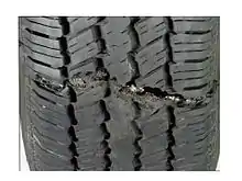 The primary cause for a blowout is encountering an object that cuts or tears the structural components of the tire to the point where the structure is incapable of containing the compressed air, with the escaping air adding to further tear through the tire structure.[1] It is also fairly common for tread separations to be termed “blowouts”, even those where the inflation pressure is not compromised. Because of this confusion, the term is rarely used by experts in tire failures, where the term "impact damage" is more frequently employed.